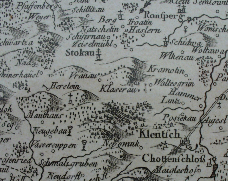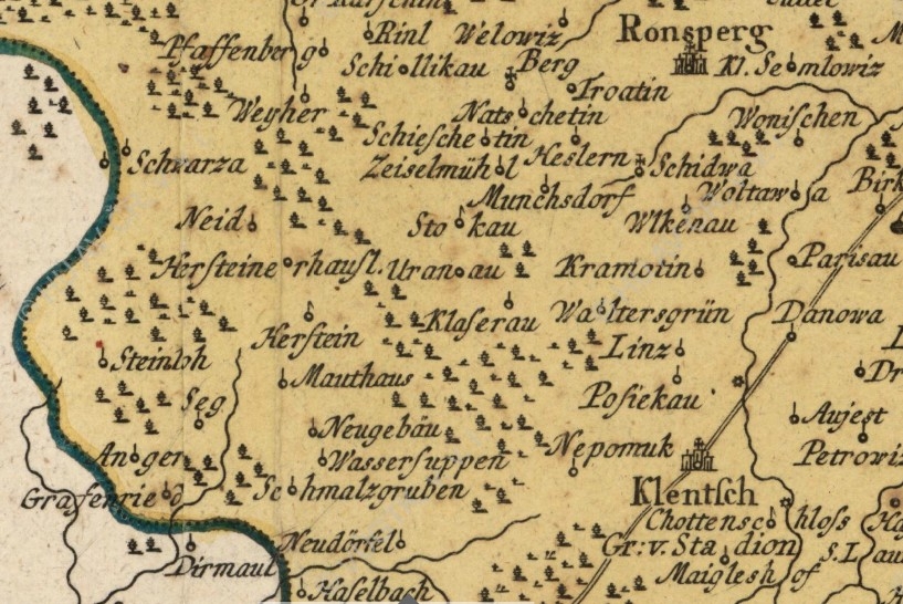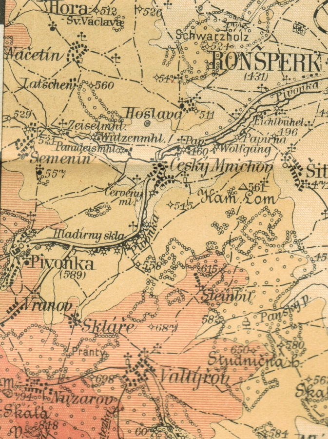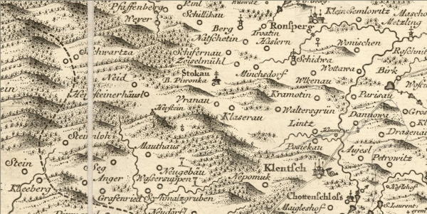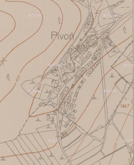 Ukázky zobrazení Pivoně a okolí v různých starých mapách, katastrech a fotomapách, jak šel čas.
