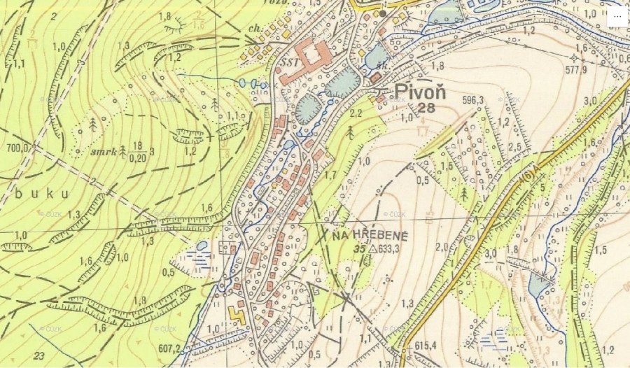 Ukázky zobrazení Pivoně a okolí v různých starých mapách, katastrech a fotomapách, jak šel čas.